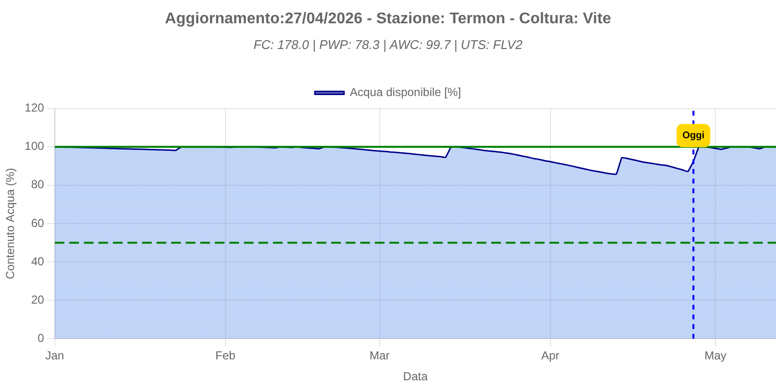 dove il 100% rappresenta la "capacità di campo" (terreno bene idratato) e lo 0% rappresenta il "punto di appassimento"